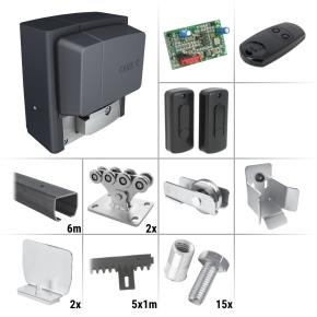 CAME BX-74 K1 7.0 Sestava pojezdových komponent, pohonu a příslušenství pro výrobu pojezdu a automatizaci posuvné samonosné (nesené) brány do 4,2 m průjezdní šířky a celkové hmotnosti do 400 kg. Při dokoupení dalšího C profilu lze tuto sadu použít až do 4,5 m šířky průjezdu.