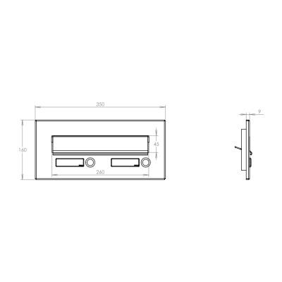 Barva schránky: Nerez; Hloubka schránky: 270 - 405; Jmenovka: Ano; Kamera: Ne; Komunikátor: Ne; Materiál: ocel; ocel nerezová; Montáž: zabudování; Povrchová úprava: barveno; mat / brus K240; pozinkováno; Rozměr čelní desky: 350 x 160; Šířka schránky: 300; Venkovní použití: Ano; Vhoz zásilek: vpředu; Výběr zásilek: vzadu; Výrobce: DOLS; Výška schránky: 330; Zvonkové tlačítko: Ne;