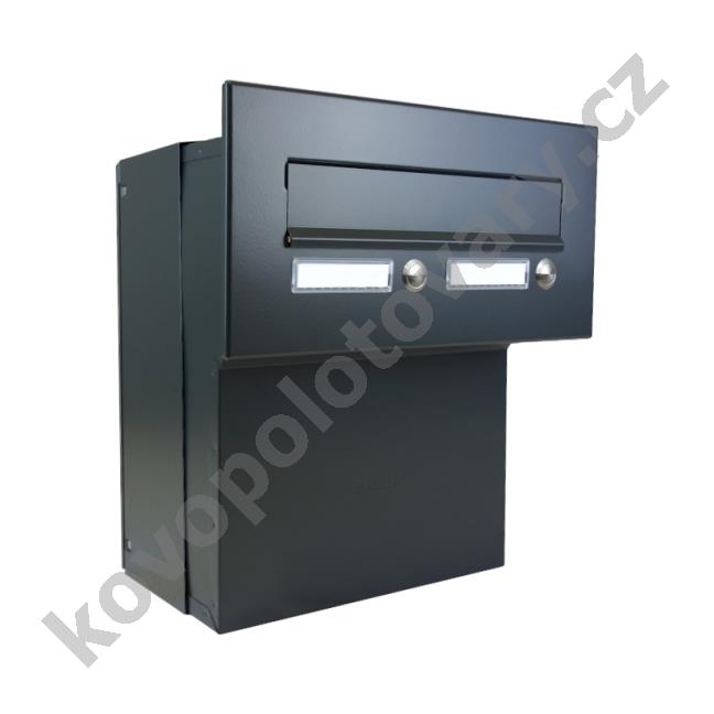 Hloubka schránky: 190 - 270; Jmenovka: Ano; Kamera: Ne; Komunikátor: Ne; Materiál: ocel; Montáž: zabudování; Povrchová úprava: barveno; pozinkováno; Rozměr čelní desky: 310 x 160; Šířka schránky: 260; Venkovní použití: Ano; Vhoz zásilek: vpředu; Výběr zásilek: vzadu; Výrobce: DOLS; Výška schránky: 330; Zvonkové tlačítko: Ano; Barva schránky: Antracit RAL 7016; Černá RAL 9005;