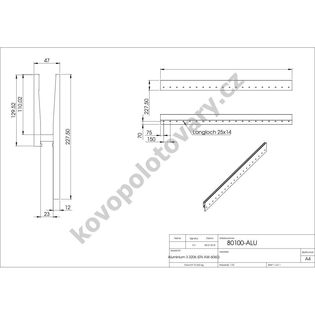 Eleganza Strong 80100-ALU - hliníkový profil zábradlí, boční kotvení, vzhled nerezu