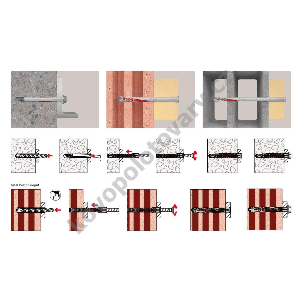 Délka: 80; Materiál: ocel; polyamid; polyoxymethylen; Min. hloubka vývrtu: 90; Průměr vrtáku: 8; Výrobce: Fischer;