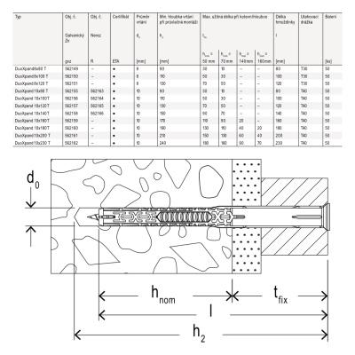 Délka: 80; Materiál: ocel; polyamid; polyoxymethylen; Min. hloubka vývrtu: 90; Průměr vrtáku: 10; Výrobce: Fischer;