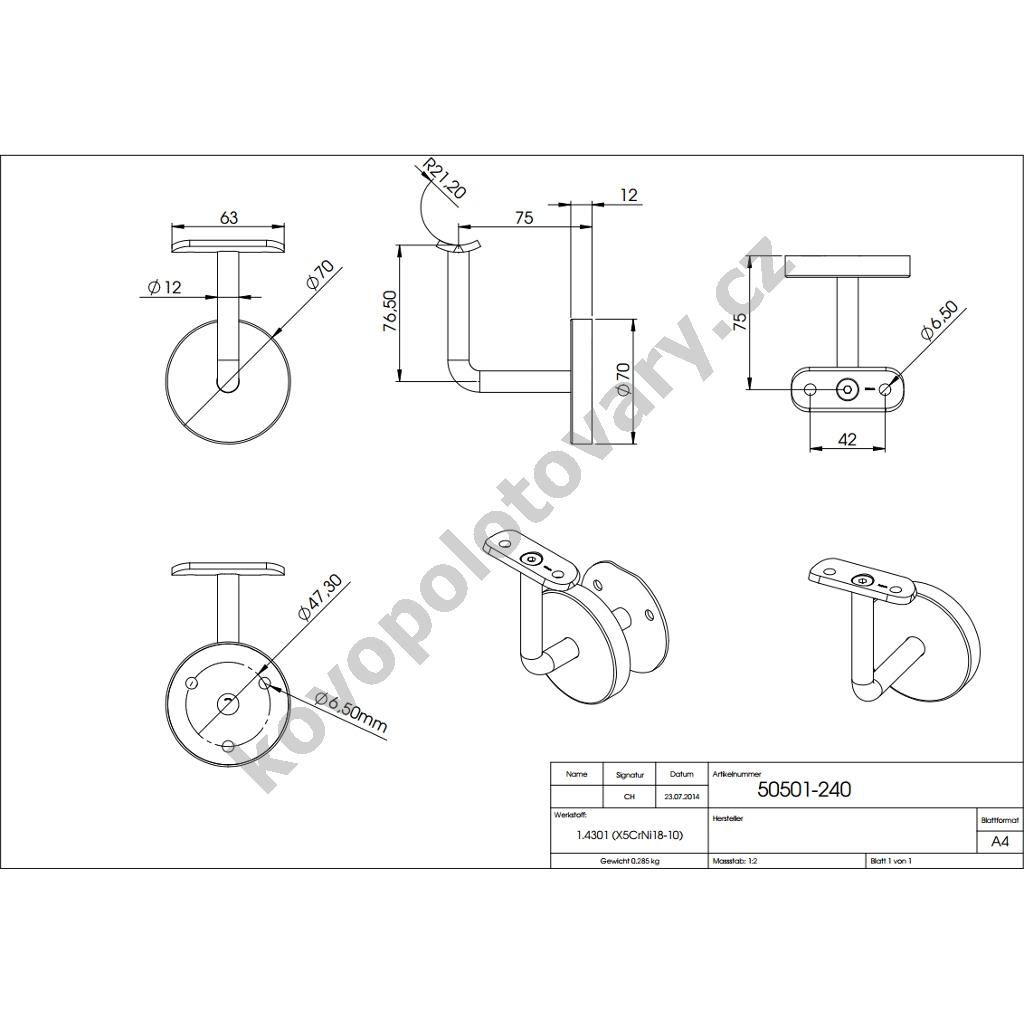 Délka balíku: 100; Krycí rozeta: ano; Materiál madla: nerezová ocel AISI 304 (A2); Prodejní délka: 1; Tvar držáku: kulatý; Tvar madla: kulatý; Výrobce: KovoPolotovary;