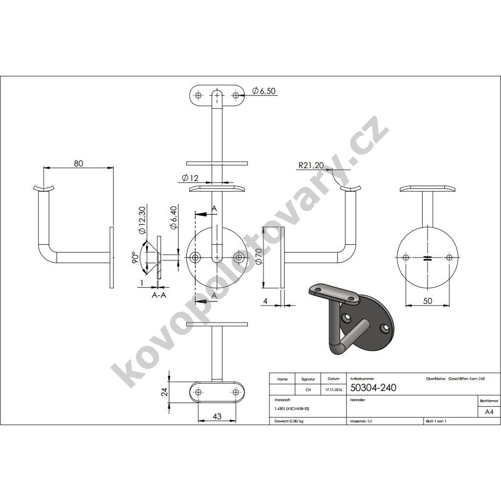Délka balíku: 300; Krycí rozeta: ne; Materiál madla: nerezová ocel AISI 304 (A2); Prodejní délka: 3; Tvar držáku: kulatý; Tvar madla: kulatý; Výrobce: KovoPolotovary;