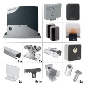 NICE ROBUS-400 set K2_7.0Z Komplet pohonu a pojezdu brány určený pro automatizaci a výrobu pojezdu posuvné samonosné (nesené) privátní či menší průmyslové brány do 4,5 m průjezdní šířky a celkového zatížení brány max. 325 kg.