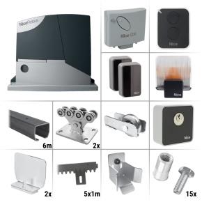 NICE ROBUS-400 set K2_7.0 Komplet pohonu a pojezdu brány určený pro automatizaci a výrobu pojezdu posuvné samonosné (nesené) privátní či menší průmyslové brány do 4,5 m průjezdní šířky a celkového zatížení brány max. 325 kg.