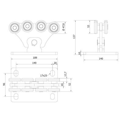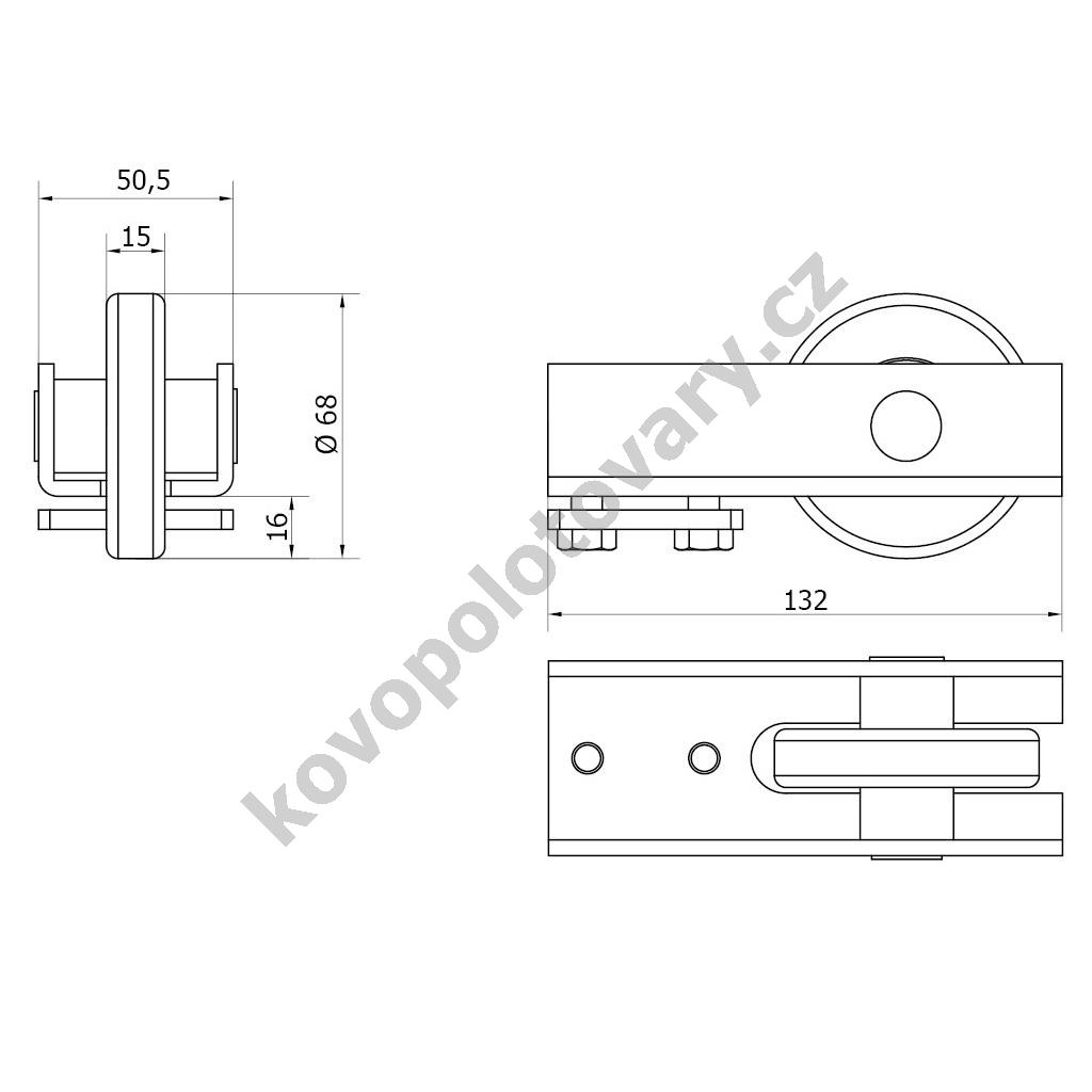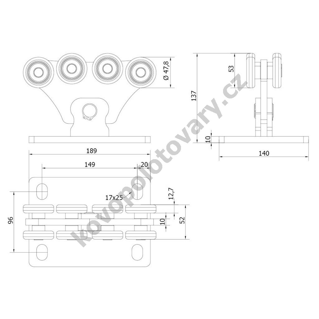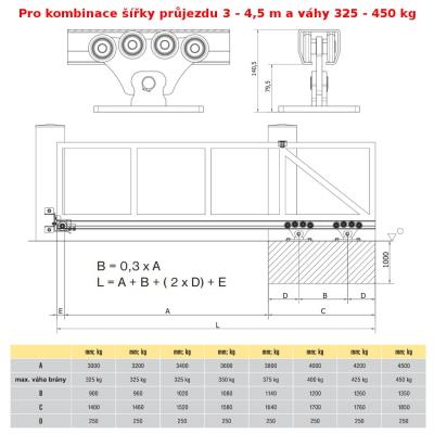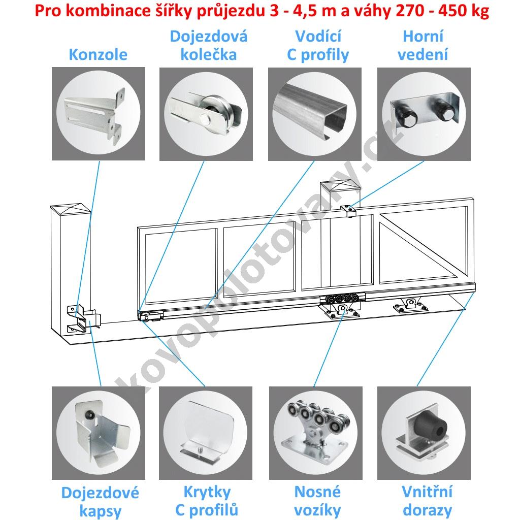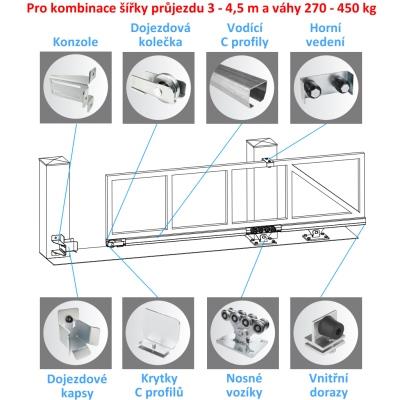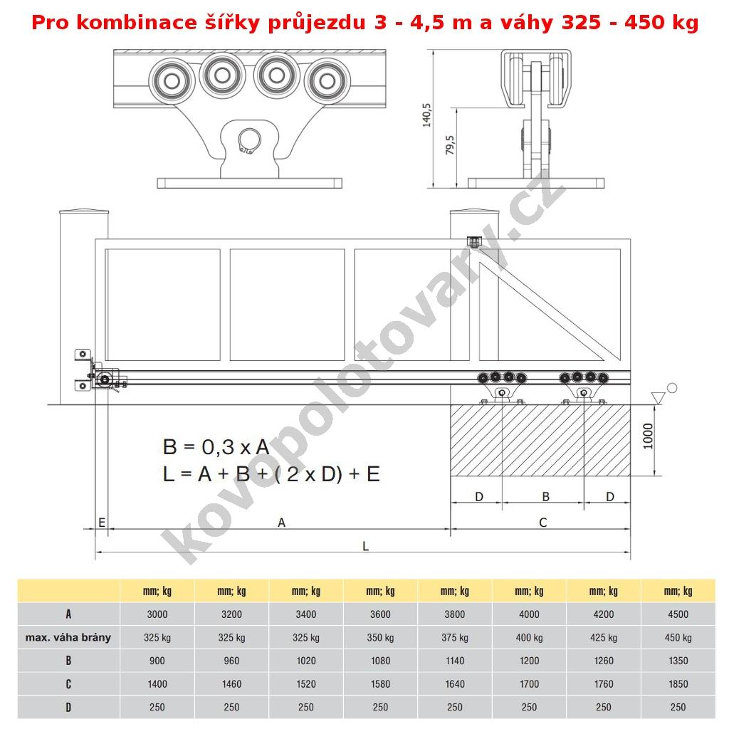 - Důležité: součástí balení není horní vedení, vodící rolka. Důvodem je vícero možností konstrukčního provedení. Tyto produkty jsou k nalezení v kategorii "BRÁNY, VRATA, DVEŘE -> Brány posuvné nesené -> Příslušenství -> Horní vedení, rolky"