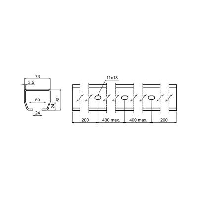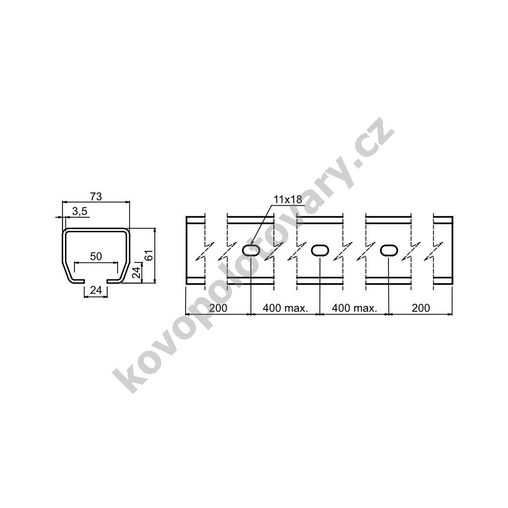 - 1x STAGE-SB_6m - vodicí C profil 73x61 mm, bez povrchové úpravy (černý), s otvory pro přišroubování k rámu brány