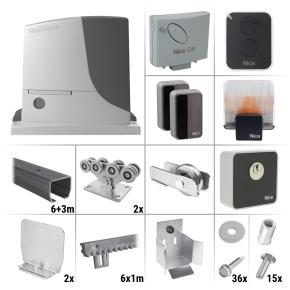 Nice ROBUS-600 K1_9.1 Komplet pojezdu a sady pohonu NICE ROBUS-600 K1_9.1 představuje vysoce spolehlivé řešení pro výrobu pojezdu a automatizaci posuvné brány do 6,5 m průjezdní šírky a celkového zatížení brány do 600 kg. Jednotlivé díly pohonu jsou vyrobeny z velmi kvalitních robustních materiálů, které zajistí maximální životnost a spolehlivost.