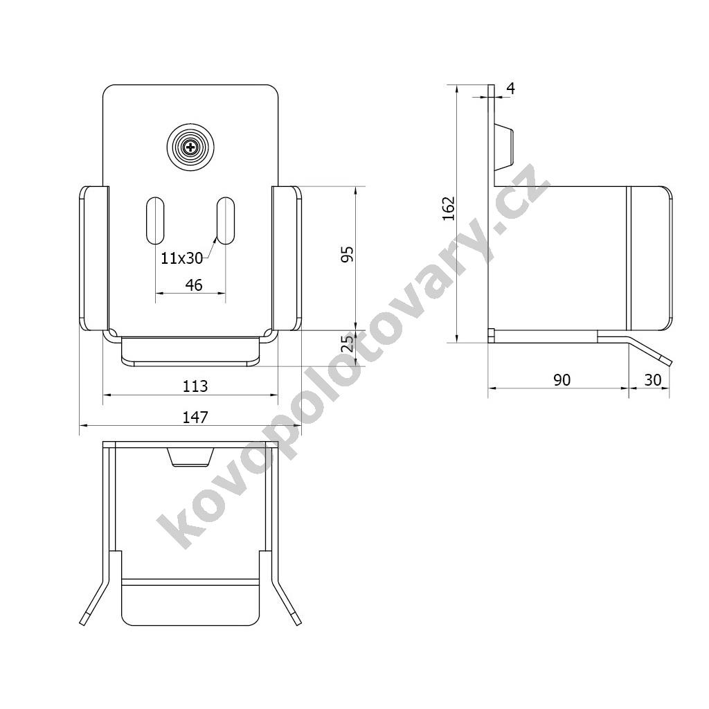 - 1x STAGE-MB_3m - vodicí C profil 95x86 mm, bez povrchové úpravy (černý), s otvory pro přišroubování k rámu brány
