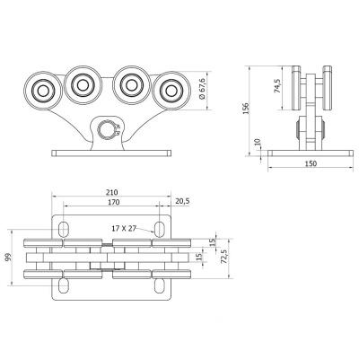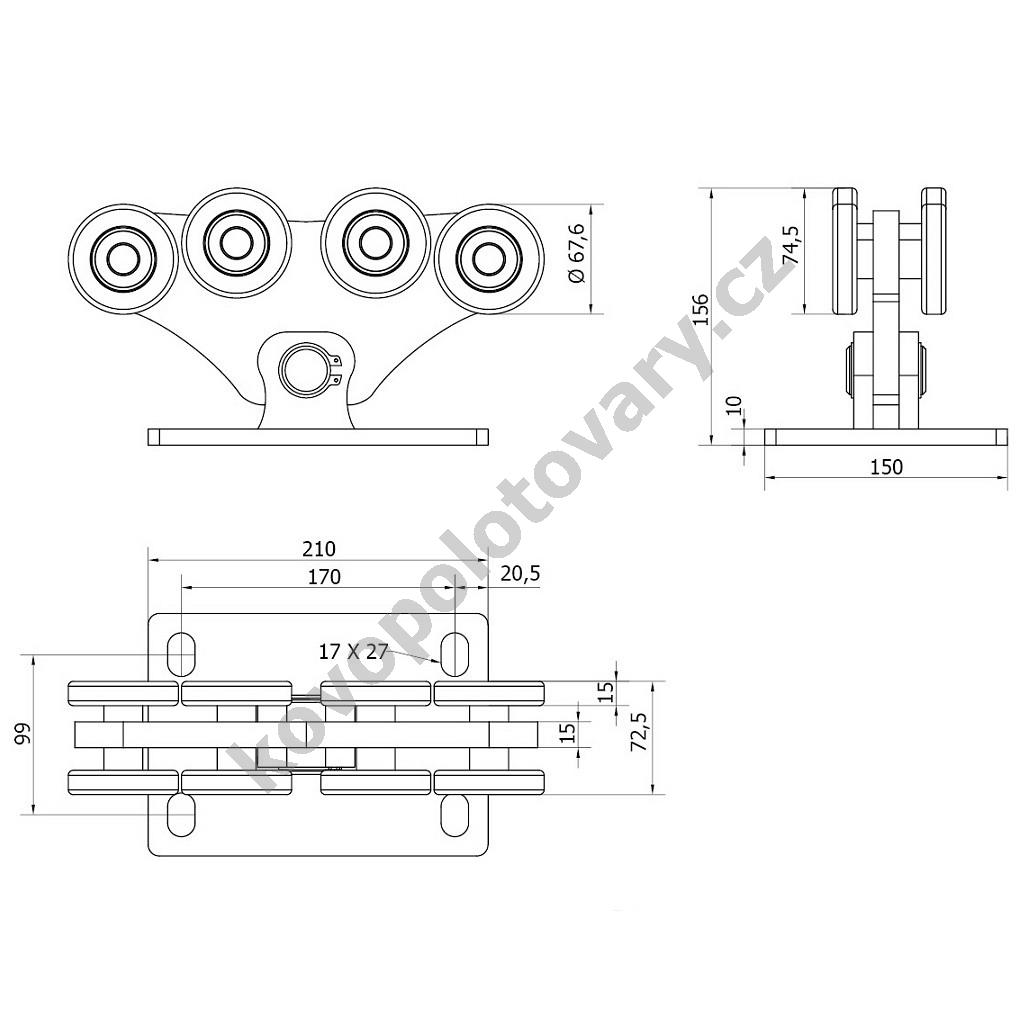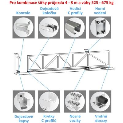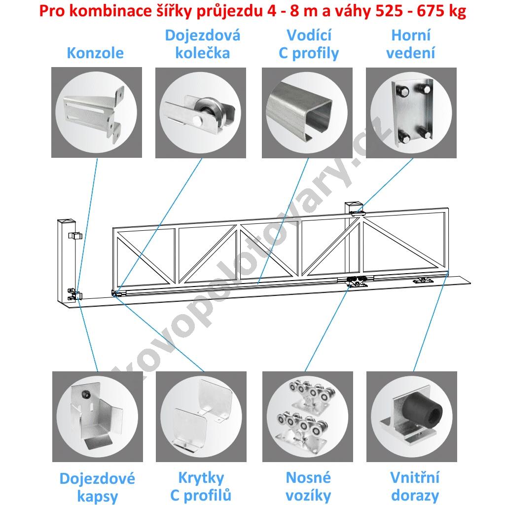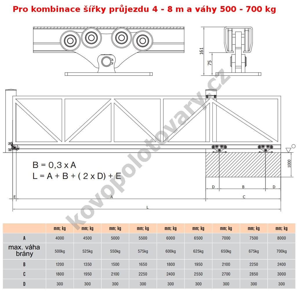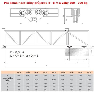 - Důležité: součástí balení není horní vedení, vodící rolka. Důvodem je vícero možností konstrukčního provedení. Tyto produkty jsou k nalezení v kategorii "BRÁNY, VRATA, DVEŘE -> Brány posuvné nesené -> Příslušenství -> Horní vedení, rolky"