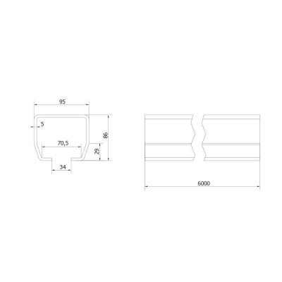 - 1x STAGE-MB_6m - vodicí C profil 95x86 mm, bez povrchové úpravy (černý), s otvory pro přišroubování k rámu brány