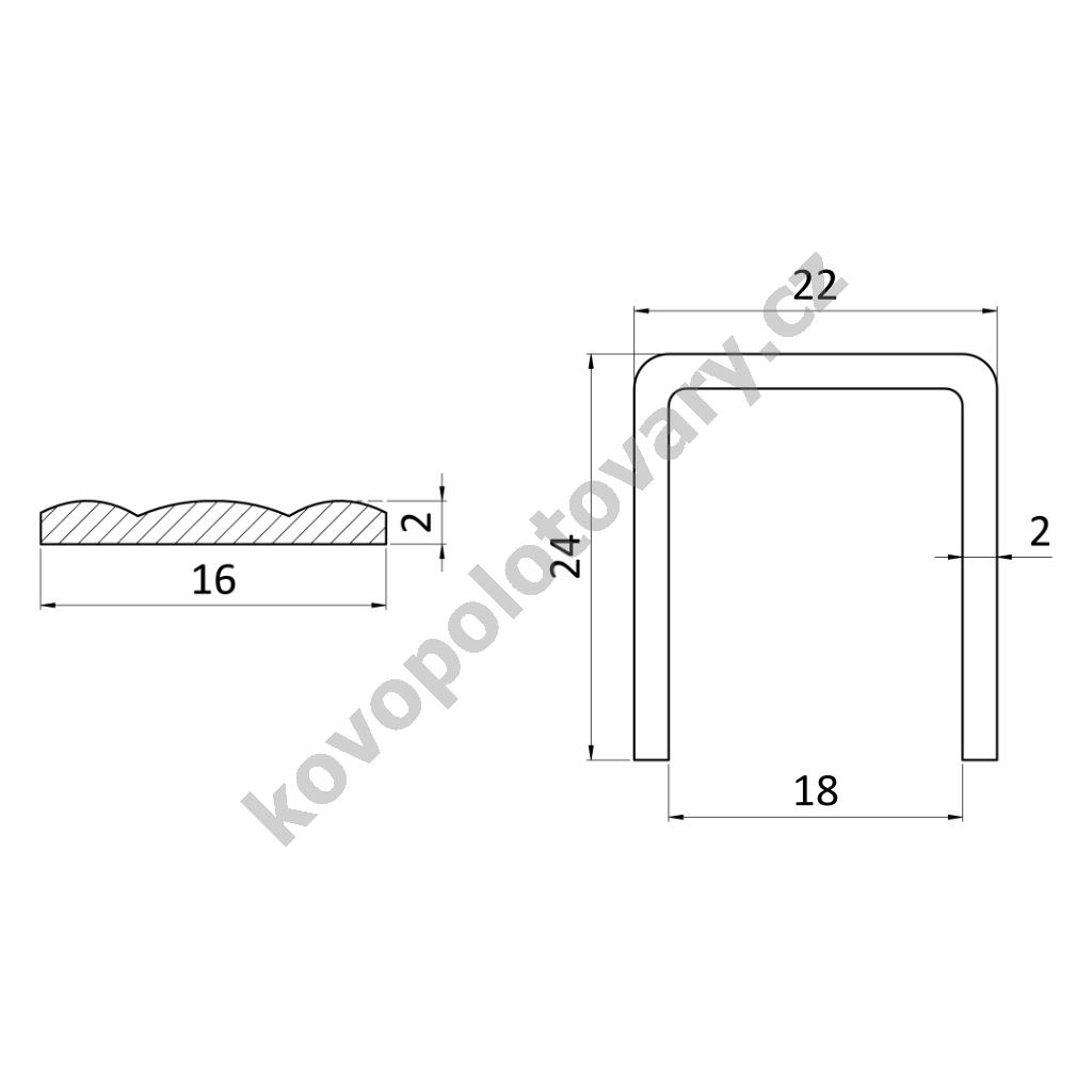 Délka balíku: 200; Materiál: ocel; Prodejní délka: 2; Průřez: 18 x 1,5; Tvar povrchu: zdobený;