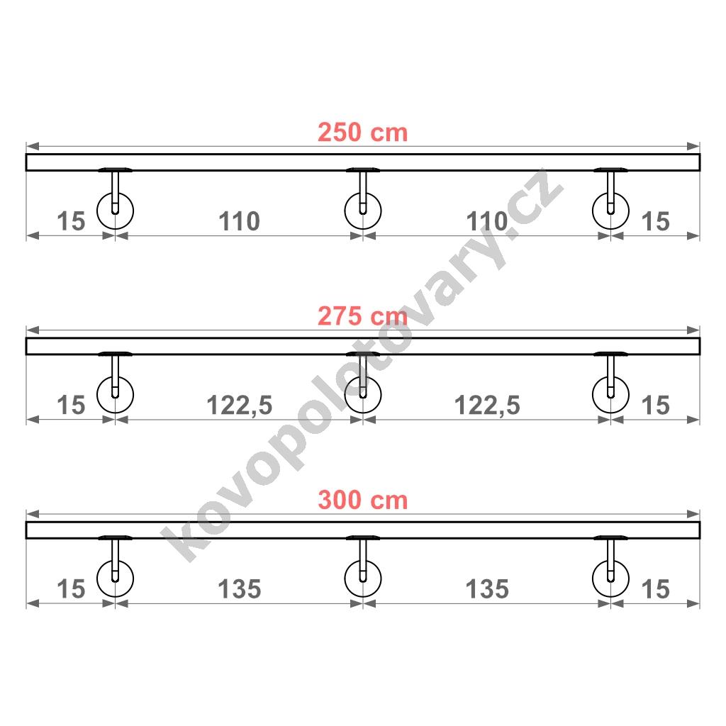 KP-42111, délka 250 cm Nerezové lakované schodišťové zábradlí na stěnu s nerezovým madlem kulatého průřezu a...