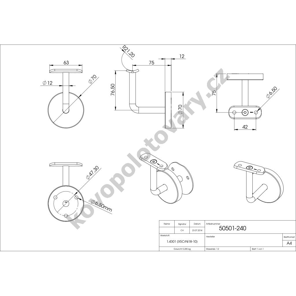 Krycí rozeta: ano; Materiál madla: nerezová ocel AISI 304 (A2); Tvar držáku: kulatý; Tvar madla: kulatý; Výrobce: KovoPolotovary; Prodejní délka: 1; 1,25; 1,5; 1,75; 2; 2,25; 2,5; 2,75; 3; 3,25; 3,5; 3,75; 4; 4,25; 4,5; 4,75; 5; 5,25; 5,5; 5,75; 6;