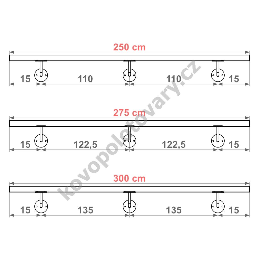 KP-42311, délka 200 cm Nerezové lakované schodišťové zábradlí na stěnu s nerezovým madlem kulatého průřezu a...