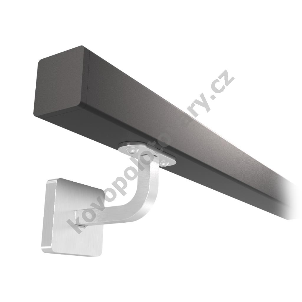 KP-42561 - lakované zábradlí na stěnu, nerezové madlo pr. 40x40 mm, antracit RAL7016, hranaté držáky s krycí rozetou