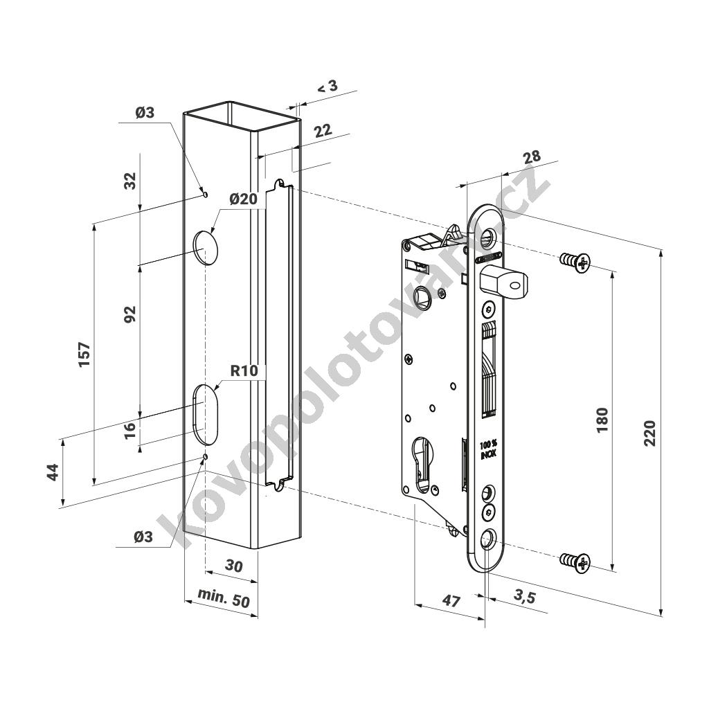 Materiál: hliník; ocel nerezová; Rozteč středů otvorů: 92; Výrobce: LOCINOX; Zádlab: 37;