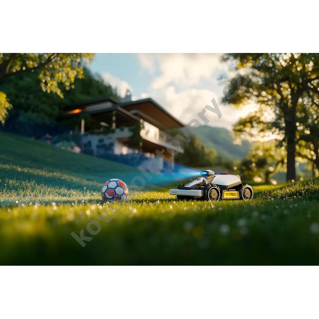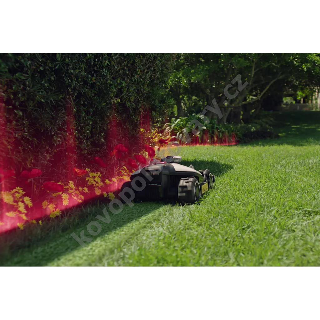 Posekaná tráva je jemně mulčována a slouží jako přirozené hnojivo. Díky binokulárnímu kamerovému systému s AI viděním se sekačka spolehlivě vyhýbá překážkám a funguje i v místech, kde je částečně zakrytý výhled na oblohu (např. pod korunami stromů).