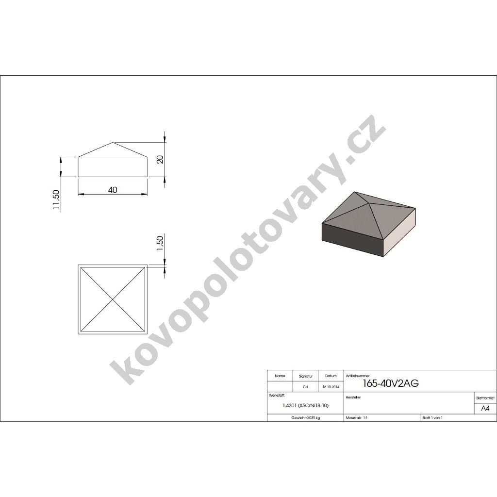 Barva: šedá; Materiál: polyethylén LD; Povrchová úprava: erodování; Rozměr základny: 40 x 40; Typ závitu: bez závitu;