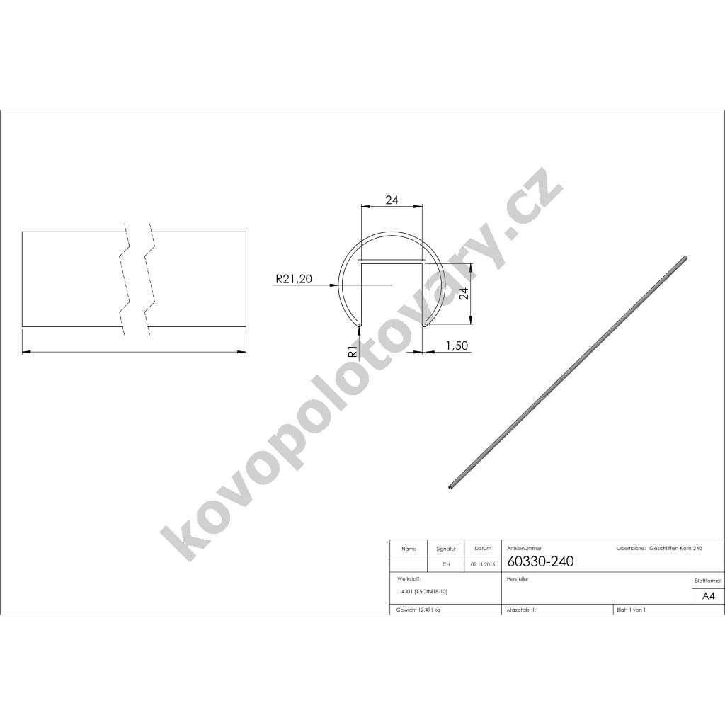 U-profil 60330-240 Určeno pro vnitřní i venkovní použití jako madlo v systémech stavebnicového montovaného nerezového...