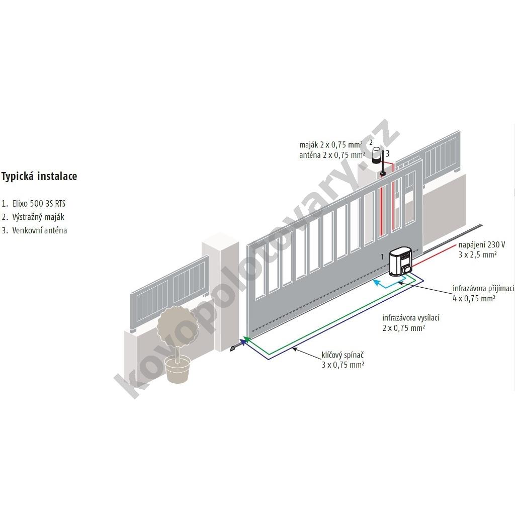 Somfy Elixo 500 3S io Komfort (1246488) Sestava pohonu a příslušenství pro automatizaci privátní posuvné brány. Motor Somfy Elixo-500 je vhodný pro automatizaci posuvných a samonosných bran s hmotností do 500 kg a šířkou průjezdu do 8 m.