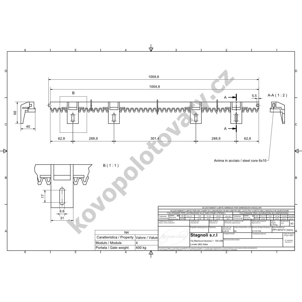 - 5x STAGNOLI N4 - vodicí plastový nylonový hřeben s ocelovým jádrem (1 m)