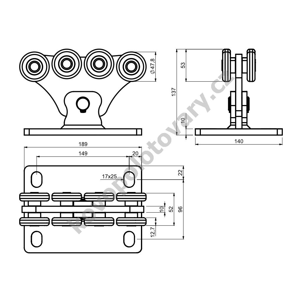 - Důležité: součástí balení není horní vedení, vodicí rolka. Důvodem je vícero možností konstrukčního provedení. Vhodná horní vedení naleznete v souvisejícím zboží.