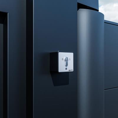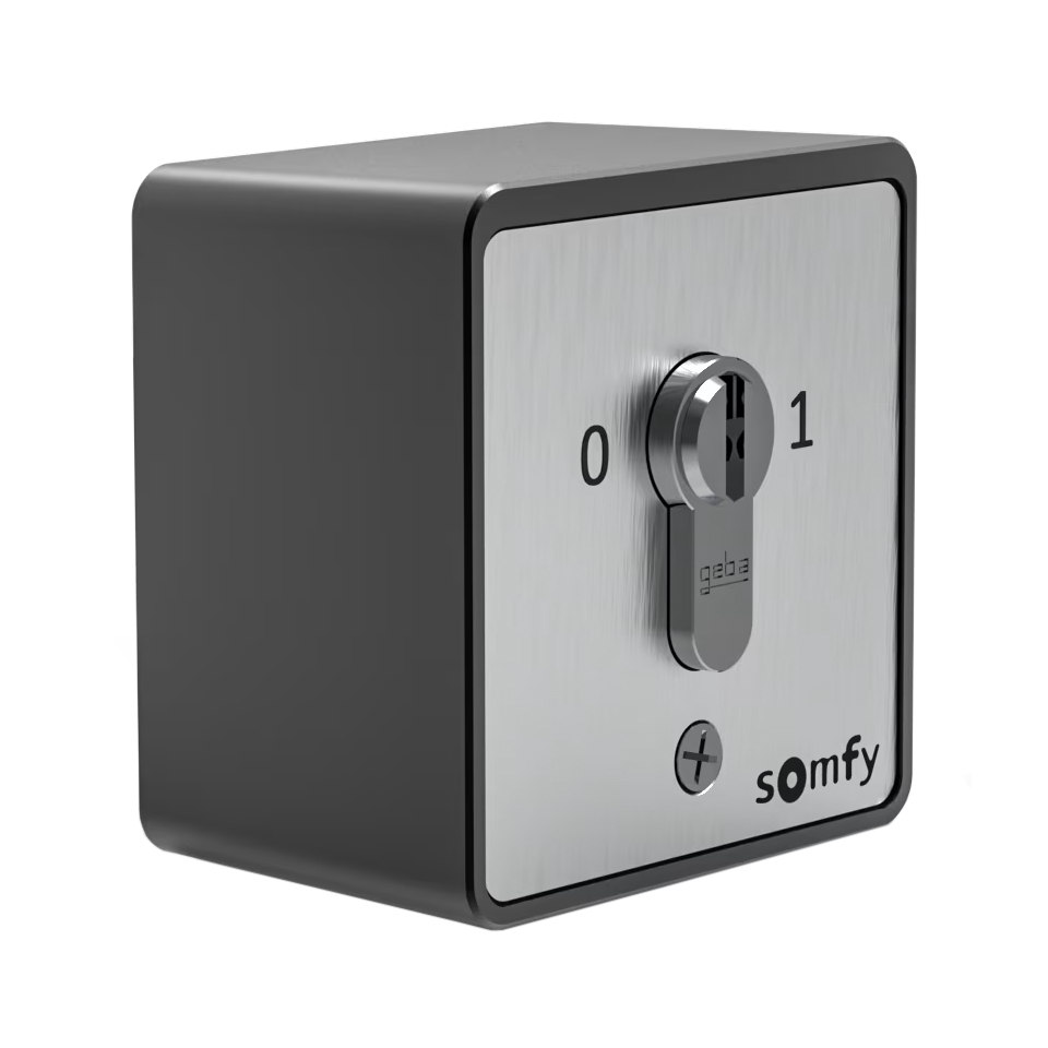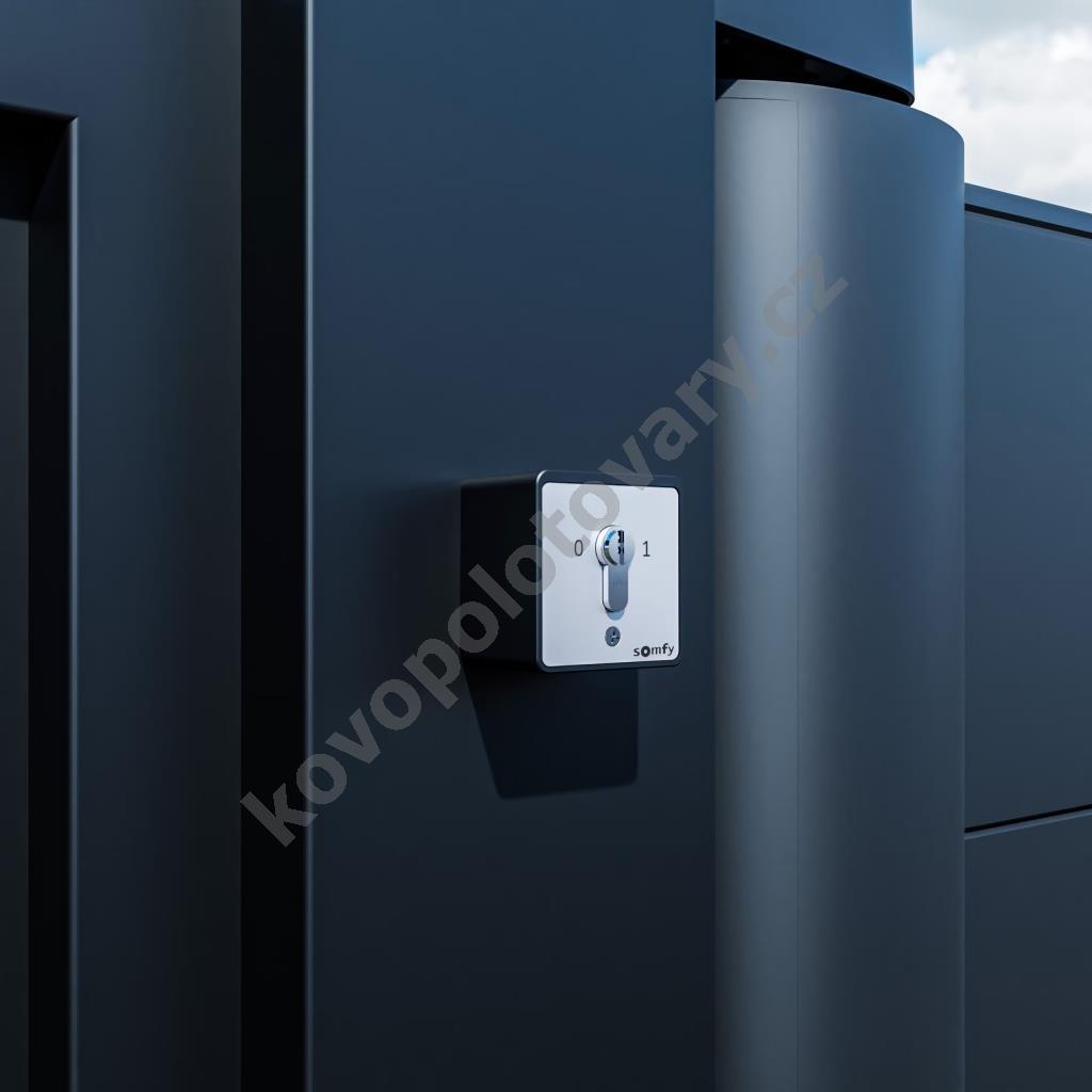 • 1x Somfy Keyswitch 2 (1871150) – klíčový spínač pro povrchovou montáž, 2pólový, pancéřovaný, pro ovládání pohonu brány a vrat
