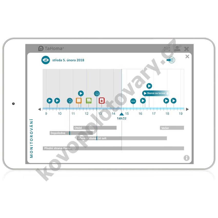 Mobilní aplikace Somfy TaHoma je zcela zdarma. Umožňuje mít kontrolu nad celou domácností i v době vaší nepřítomnosti. V případě vyhodnocení vniknutí cizí osoby systémem TaHoma dostanete zprávu s upozorněním na zvolené zařízení. Speciální program ,,Odrazovací akce" slouží k odrazení lupiče a zároveň zabezpečí vaši domácnost (např. žaluzie se zavřou, světla se rozsvítí).