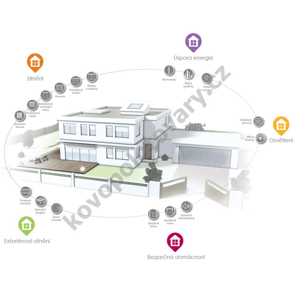 *Odjíždíte do práce. Stisknete tlačítko a světla se sama zhasínají, rolety se zatahují, garážová vrata či vjezdová brána se otevírají.