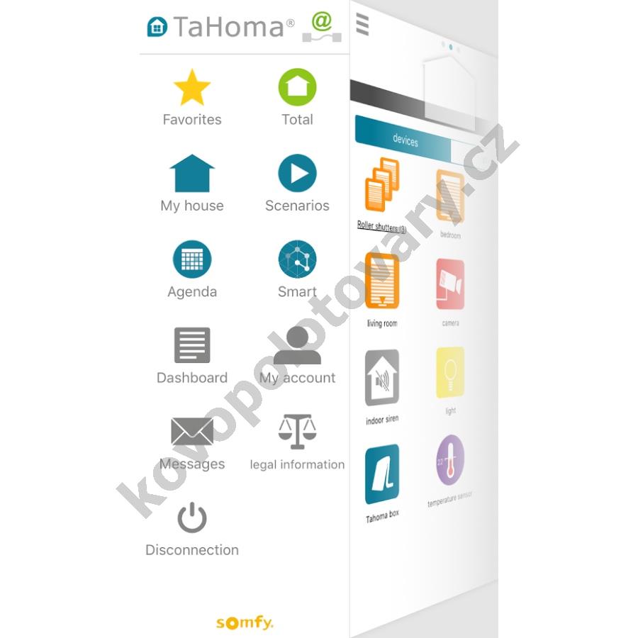 Somfy TaHoma Premium Centrální jednotka TaHoma Premium umožňuje uživateli ovládat všechna zařízení v domácnosti prostřednictvím internetového připojení. Domácnost můžete ovládat přímo z domova, ale i vzdáleně pomocí aplikace pro mobilní telefon, tablet a webového rozhraní v počítači.