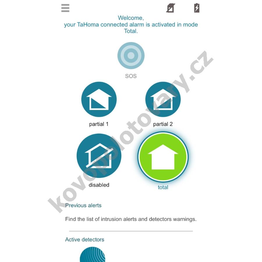 V aplikaci máte možnost si zobrazit aktivní čidla v aktuálním režimu, historii poplachů a hlášení čidel nebo díky funkci SOS upozornit své příbuzné v případě nouze pouhým stisknutím ikonky.