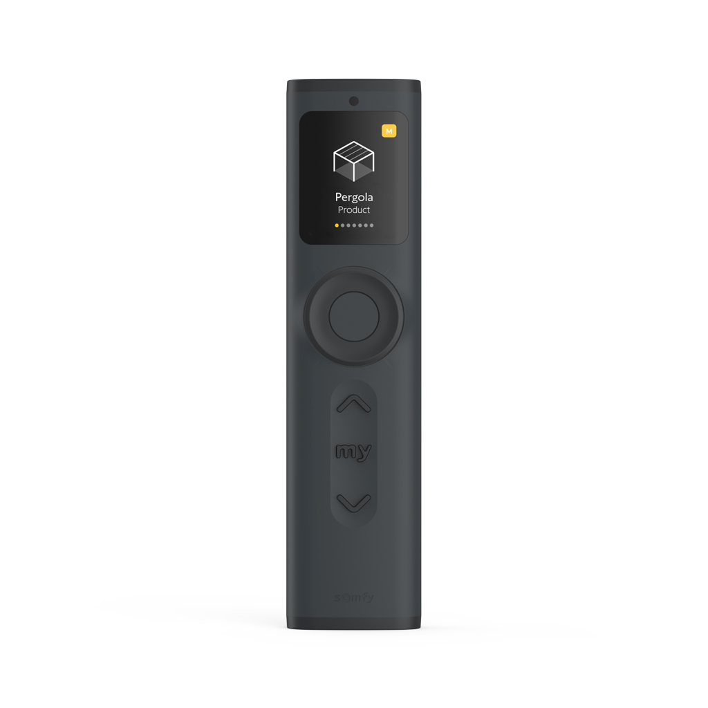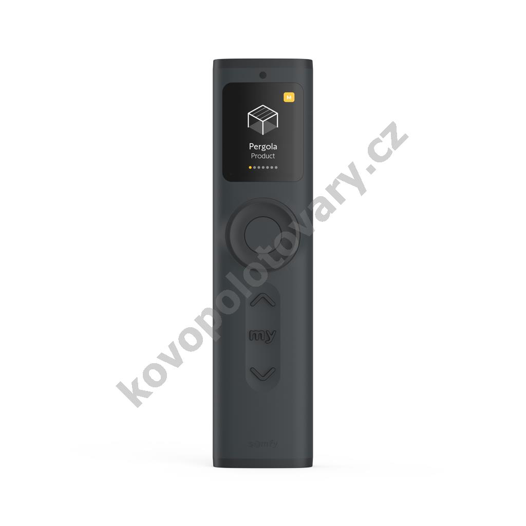 Somfy Ysia Patio io Anthracite (1871290) Přenosný dálkový ovladač s displejem pro ovládání motorizovaných stínicích prvků, pohonů, osvětlení a dalších zařízení s technologií io-homecontrol. Umožňuje lokální i centrální řízení až 16 zařízení, skupin nebo scén. Vhodný i k naklápění lamel, stmívání a regulaci světla na terase.