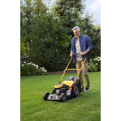 Unikátnost modelu Combi 48 SQ spočívá v možnosti volby mezi čtyřmi metodami zpracování trávy: sběrem do 60litrového hybridního koše, mulčováním pomocí přiložené vložky, zadním výhozem nebo bočním výhozem přes odnímatelný deflektor. Hybridní konstrukce koše (kombinace plastu a textilu) zajišťuje optimální proudění vzduchu, což zaručuje dokonalé naplnění celého objemu. Velká zadní kola o průměru 280 mm jsou uložena v kuličkových ložiskách, což zvyšuje manévrovatelnost stroje i na nerovném povrchu. Výšku sečení lze snadno nastavit centrálně pomocí jedné páky v šesti polohách od 22 do 80 mm.