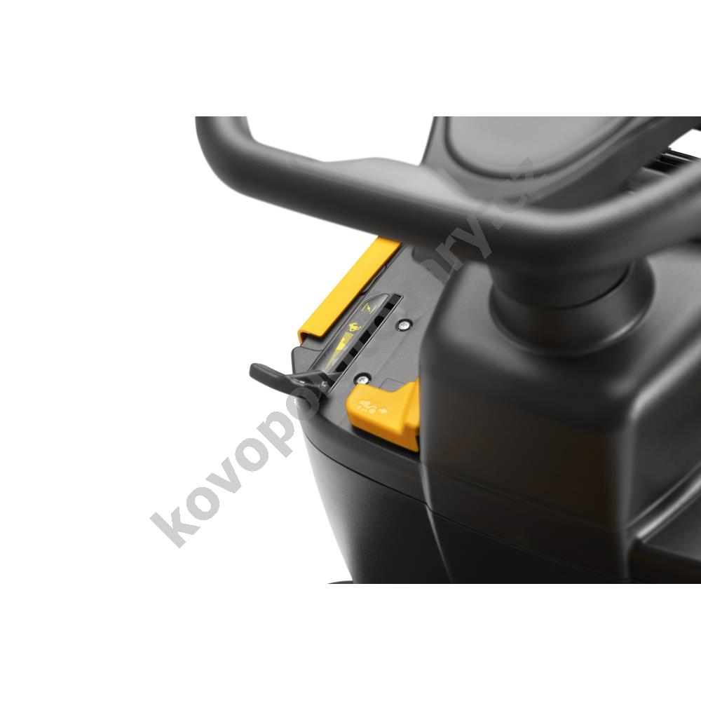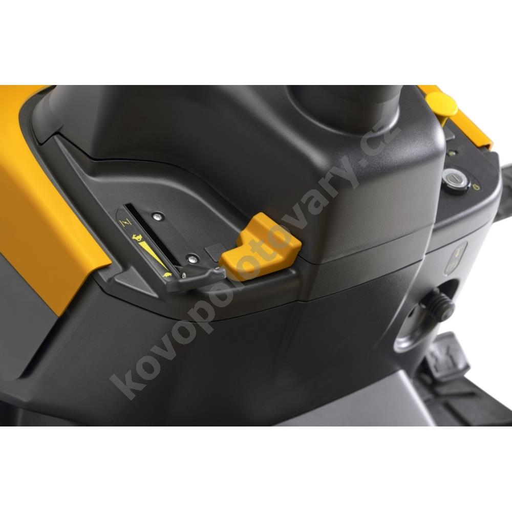 - Hydrostatický pohon: Nožním pedálem ovládaná převodovka zajišťuje plynulou regulaci rychlosti vpřed i vzad, což je klíčové pro manévrování kolem překážek.