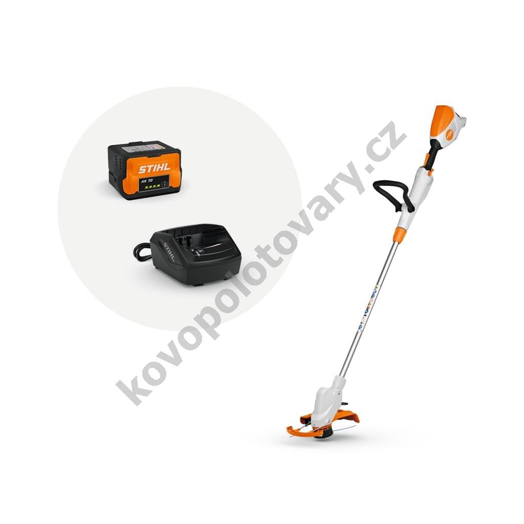 STIHL FSA 50.0 + AK 10 + AL 101 (FA11 011 5713) Sada AKU vyžínače se strunovou žací hlavou, baterie a nabíječky, vhodná na údržbu menších travnatých ploch a okrajů trávníku. Kruhová komfortní rukojeť s regulací rychlosti a výškově nastavitelná teleskopická tyč. Žací hlava je otočná o 90° a polohovatelná ve třech úhlech. Tento vyžínač dále disponuje plynulou regulací otáček a systémem rekuperace energie. Vyžínač je vhodný do oblastí citlivých na hluk.